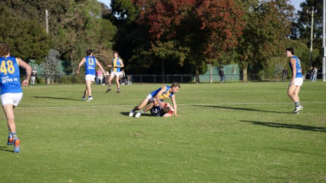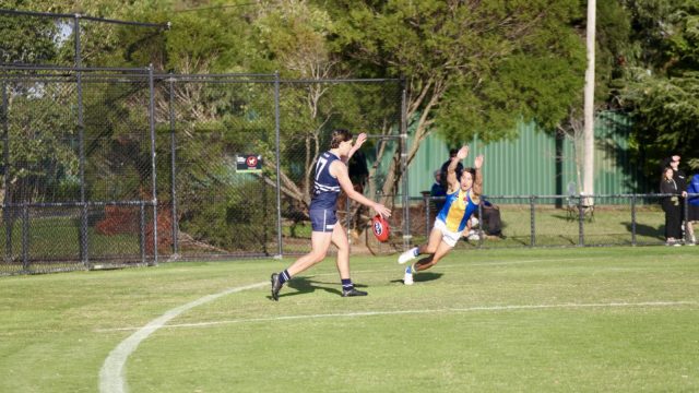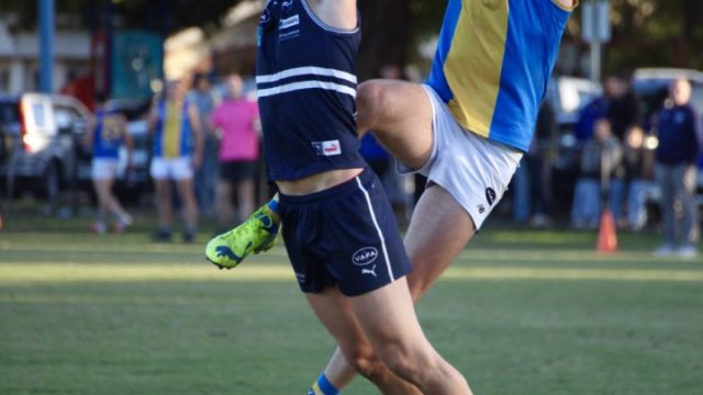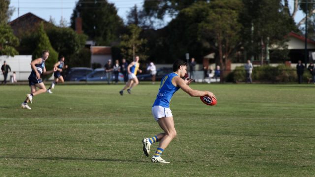 Fine play out of the centre by Algeri shot the ball forward, where Nathan Scollo either marked or was freed in the goal square before a minute had elapsed in the quarter. The slender lead had increased to 15 points as both sides then missed easy goal chances. Play was a repeat of the 3rd stanza with both sides dominant at times! At the 12 minute mark, Indovino hurriedly snapped from the FP & Cameron managed to get a boot on the ball in the goal square to lift the lead to 21 points. DLS looked safe at this stage.