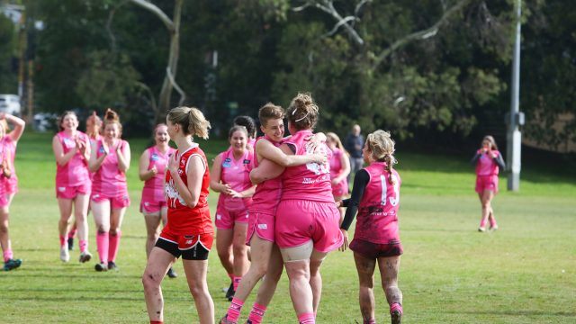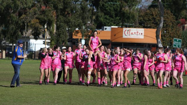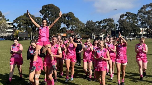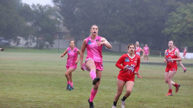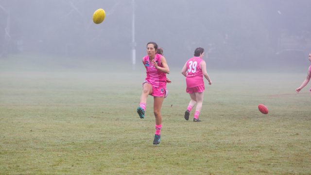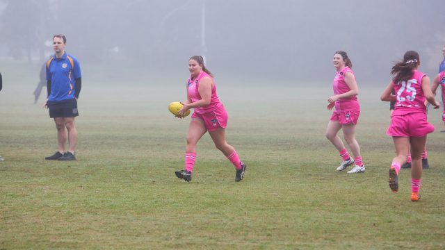 The way we started the third quarter ensured that the game would be beyond doubt by the final break. Our ball movement and the space inside our forward half allowed 4 goals to be kicked, all from marks inside 50 which shows that the way the ball was coming into our forward 50 was brilliant, and on the end of it was Kym ‘Spicy Rum’ Morgan who put the game beyond doubt with a 3 goal burst in 12 minutes to blow the margin out, her strong hands and confident set shot kicking, saw the bench erupt! Coops also was able to find plenty of space inside forward 50, with one mark just slipping from their grasp at the last moment before an uncontested mark in front of goal saw another goal for them this season, we now have two guns tied as our leading goal kickers for the season!