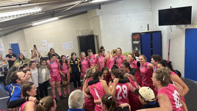 The other exciting aspect of the morning was a major milestone for one of our leaders, 50 games in the Blue and Gold for Jen Males a much loved player within our club, ‘The Jenerator’ was her usual, understated self as the attention turned to her pre game with some beautiful words from captain Grace McDonell. Jen has helped to keep this program alive in some challenging times, and it is great that she can now be a part of a thriving guns program with plenty of players and the appetite of our group to continue to get better. Jen is now super determined to get herself to 100 games, a milestone we cant wait to be a part of!