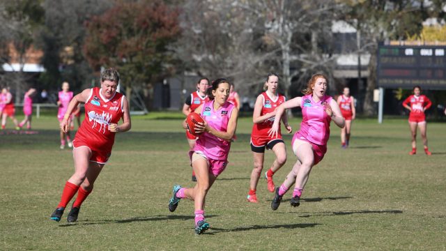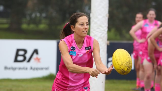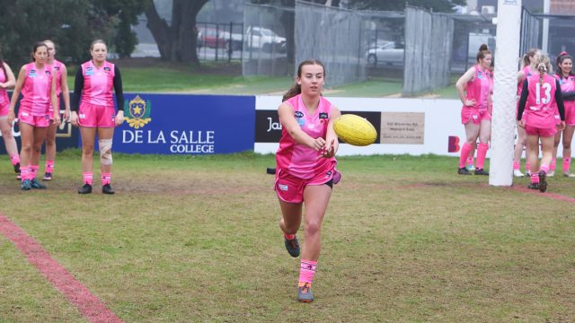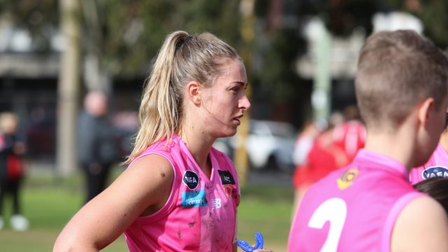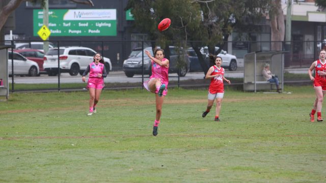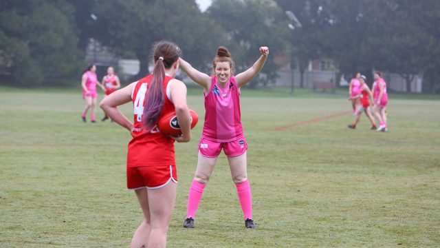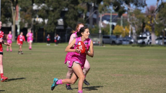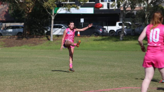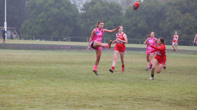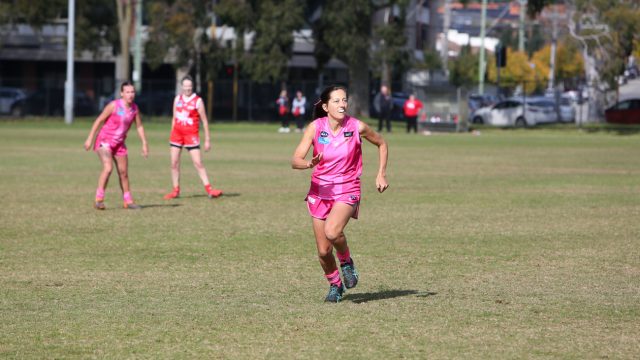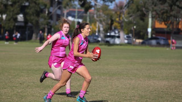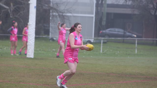 Pre game, the Guns were challenged to run all day, with the advantage of having 24 players, compared with the oppositions 14, there was no reason that we wouldn’t be able to run the entire game out. From the first bounce, there was real intent in what we were doing, moving the ball with speed and into open space. It didn’t take long for us to hit the scoreboard through the ‘Wrecking Ball’ Stevie Hatzis, who kicked her first ever goal to get us underway, following a terrific piece of play from Rachel ‘Scrubs’ Whitelaw. We were generating plenty of chances inside our forward half and after setting up Stevie’s first goal, Rach got on the end of the next one with a perfect finish to get us off to a great start in the opening quarter.