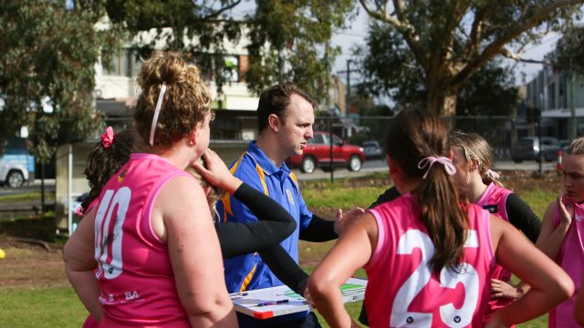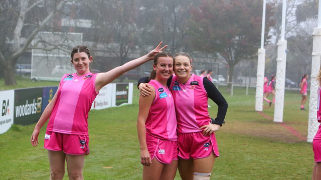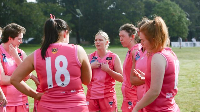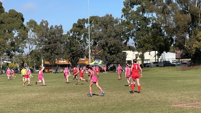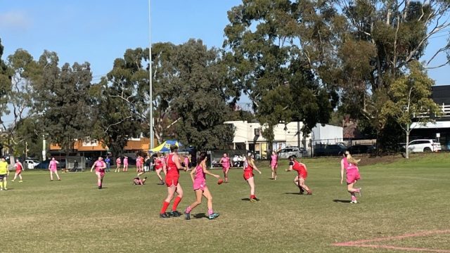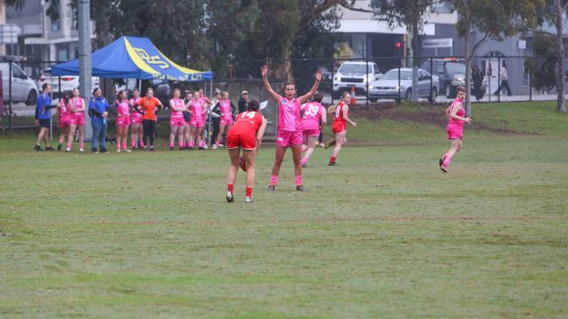 We had our highest score for the season by quarter time and the energy was infectious through the whole group, they were able to identify that a lot of things that we have been working on, most notably what they have named ‘the circle of support’ was working, allowing our ball getters plenty of options to give a handball to a player in space. The game continued in our favour in the second quarter, with the ball spending a lot of time in our forward half, where we generated opportunities, Emma ‘B1’ Carson was a brilliant target for us inside 50, able to mark the ball in the air, bring it to ground and in a number of instances collect the ball on the ground herself. We weren’t able to make the most of our dominance with goals but we defended incredibly well, stopping the opposition from scoring once again.
