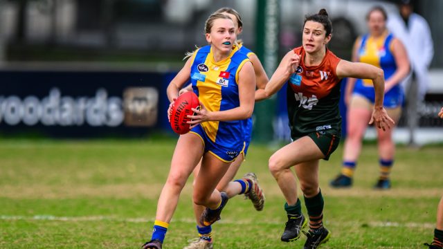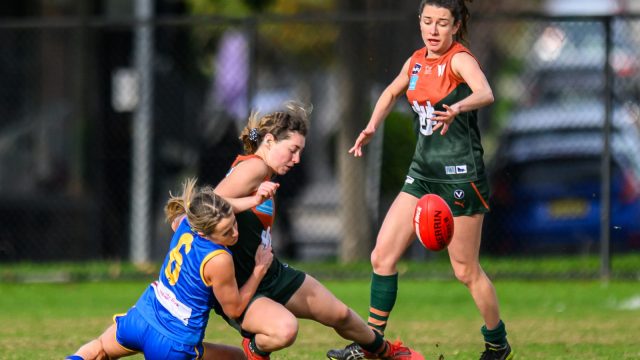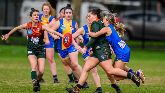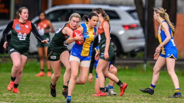 The early part of the third quarter was a real scrap, we couldn’t find away to break the game open, with regular stoppages and minimal scoring, as the wind picked up, it challenged us with some of our ball use and ball handling which made chains of possession and scoring hard to come by. Our best and probably only real likely chance to draw back level was in the dying seconds of the quarter as Kirstie ‘Oak’ Constantineas broke clear of a pack running towards goal, steadied and and as she steadied, the siren sounded before she had the chance to kick. She probably needed 3 more seconds because her kick went through the goals and would have given us a one point lead going into the final quarter.