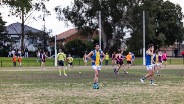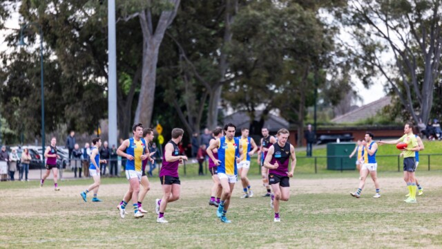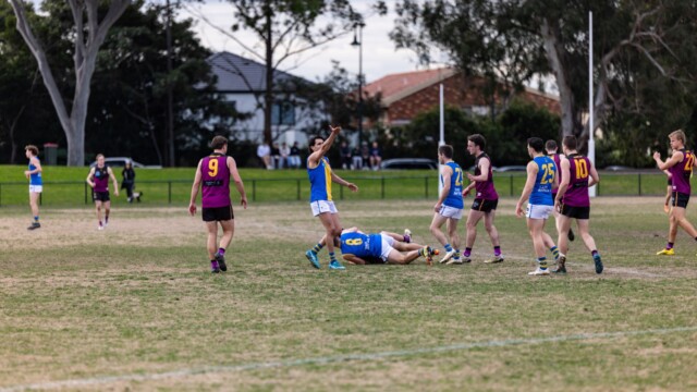 Qtr4: DLS were now kicking to the end where 19 of the match 24 goals were scored despite there being no discernible wind advantage! Bohan, who was having an imposing presence on the match, passed to Seb Fillipovic to O’Meara, who goaled from the HFF. Margin 19 points after 2 minutes. Bohan was again involved, passing to Mackie, who passed to O’Meara to snap a goal from a pack situation. Lead 26. Bohan again marked in defence, but a free was awarded to OH for an off ball interference, of which players had been warned by the umpires. The resultant goal sparked another resurgence from OH with 24 minutes remaining! Lead 20 points.