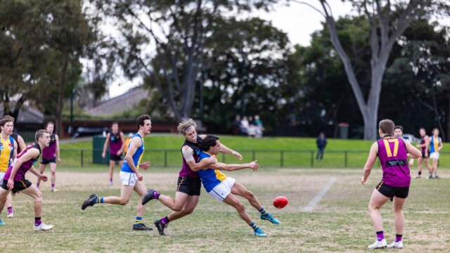 With tackling & smothers a feature, OH seemed to have the ascendency & their goal at the 13 minute mark confirmed this. DLS had opportunities. Scollo pack mark & play on to Ryan O’Meara who marked but scored only a behind. Soon after, OH with quick ball movement scored their 2nd, at the 18 minute mark. A strong tackle by Tom Lyngberg, in the FP deserved much better than the resultant “out on the full”, leaving DLS trailing by 13 points at ¼ time