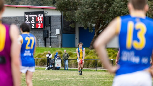 Qtr 2: DLS started strongly with Curtis Day intercepting & passing to Will Mackie to Lyngberg. His kick from the FP missed again! At the 4-minute mark, Indovino was freed & the strong disputation by OH, gave Indovino the goal, after the 50 meter penalty took him to the goal square. Top level footy was on display & with Pat Bohan showing ruck smarts, taking the ball from a ruck situation, 30 meters from goal to snap DLS’s 2nd at the 11 minute mark. Despite being constantly in attack DLS could not improve on the scoreboard as several rushed snaps missed!