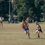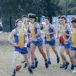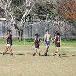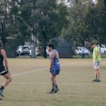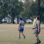 Even though we had Stef, George and Reedy back from long term injuries, we were still light on for numbers, so in a display of true club spirit, we had Eddie and Connor help us out after playing their game with the Colts. The first quarter showed good signs with clearances and forward entries going our way, and as a result we were leading at the first break with clever goals from Beau and Nids.